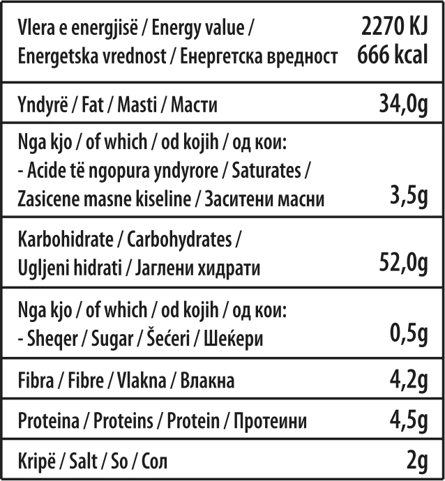 Vlera mesatare ushqyese e produktit (g/100g)